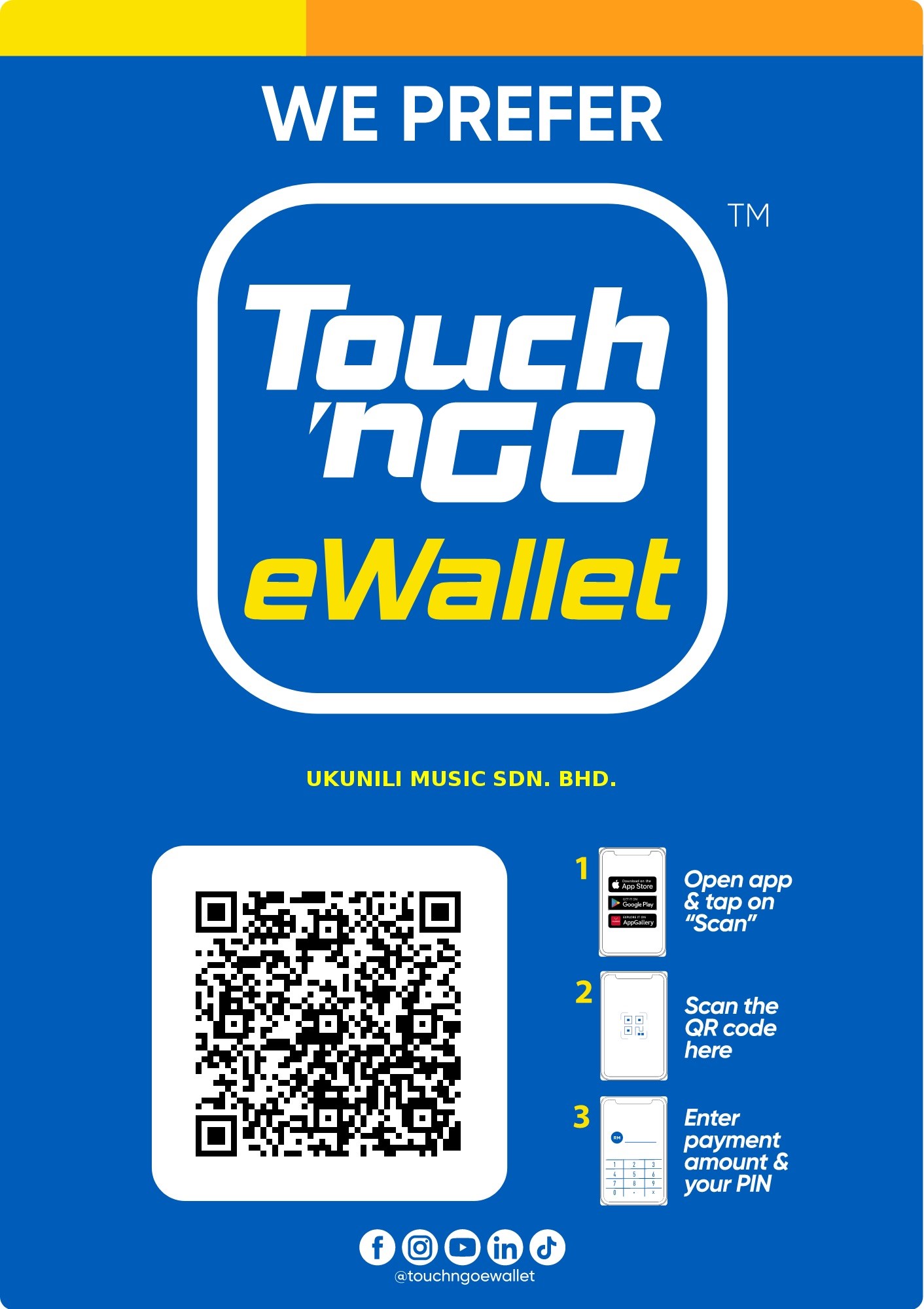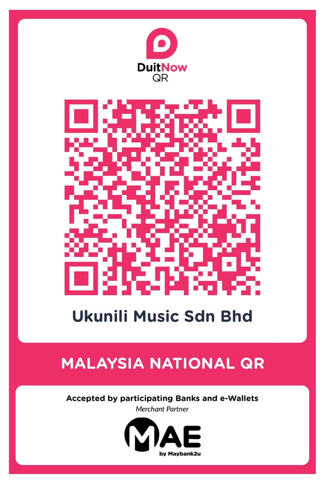 Open Maybank, CIMB, Public Bank, RHB, Hong Leong, MAE, TNG, GrabPay, Boost, or any DuitNow-enabled app and scan this QR.